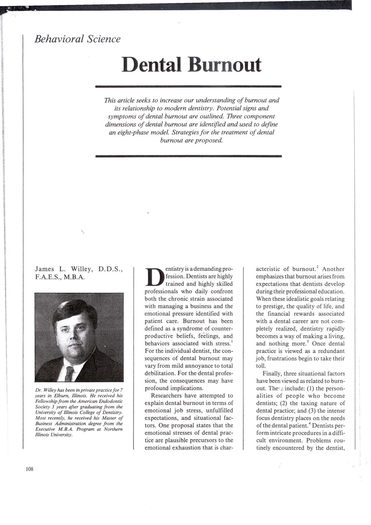 This long-lost article holds the secret for you to increase your understanding of burnout and its relationship to modern dentistry so that you can know the potential signs and symptoms of burnout and utilize strategies for the treatment of dental burnout.